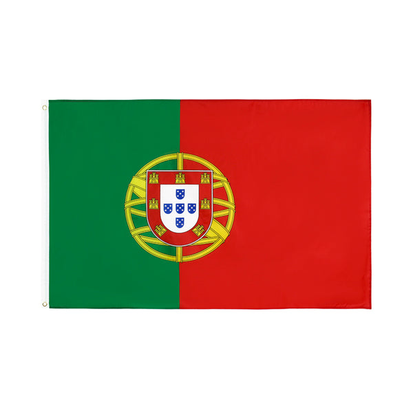 Le drapeau portugais se compose de deux bandes, verte et rouge, qui se croisent au cœur de la nation. La signification de ces couleurs est profonde : la bande verte incarne l'espoir et la régénération, tandis que la bande rouge représente le courage et le sang versé pour la patrie. Au centre de l'emblème se trouve un blason national qui évoque l'histoire maritime glorieuse du Portugal. Ce blason est orné d'un astrolabe doré entouré de sept châteaux rouges sur un fond rouge. Au centre de l'astrolabe trône un écusson blanc, portant cinq bouclards bleus, chacun orné de cinq points blancs.