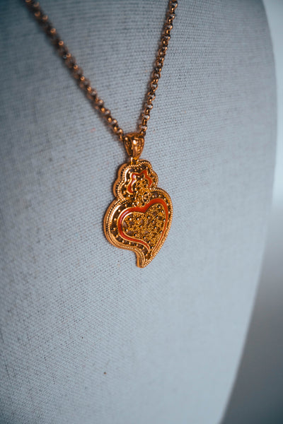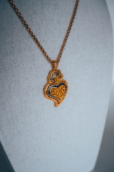 Laissez-vous charmer par le collier Encanto Azul ou Encanto Vermelho, une pièce qui unit tradition et modernité avec élégance. Son pendentif Coração de Viana, finement travaillé en filigrane, se décline en bleu profond ou rouge éclatant, symbolisant la lumière et la passion du Portugal.