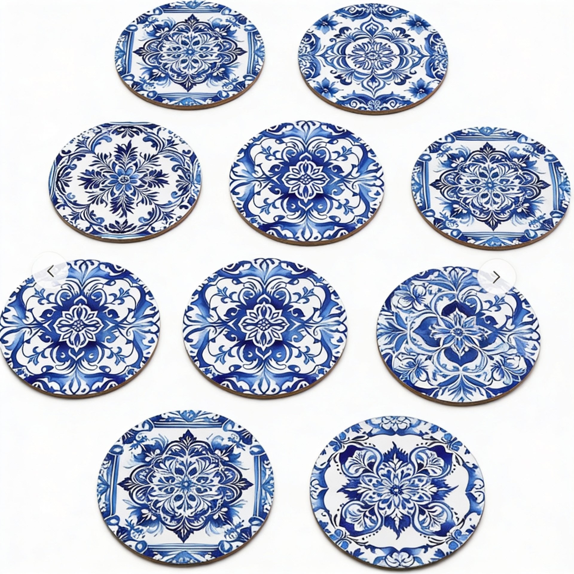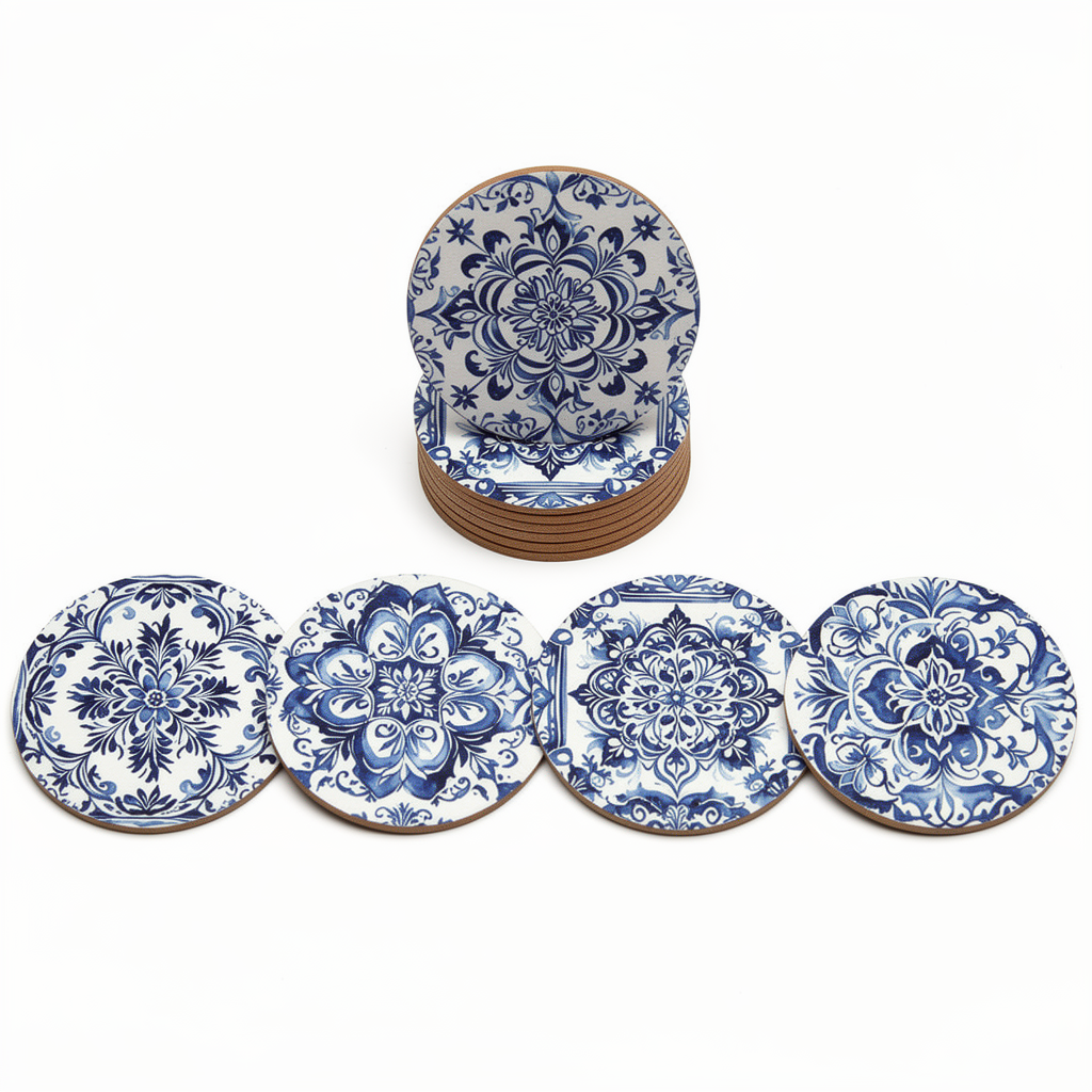 Chaque pièce de ce set arbore des motifs géométriques et floraux bleus et blancs, typiques de l'artisanat lusitanien. Que ce soit pour un café matinal ou un apéritif entre amis, ces dessous de verre apportent une touche de décoration méditerranéenne chic et intemporelle à votre intérieur.