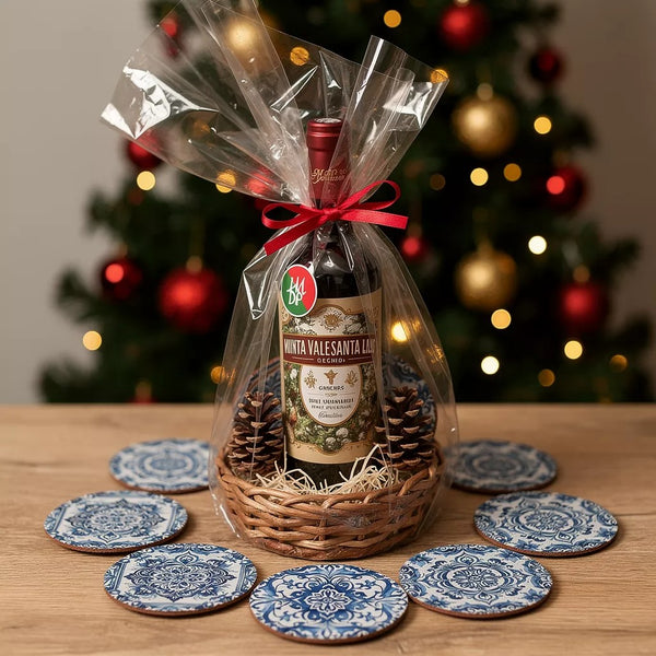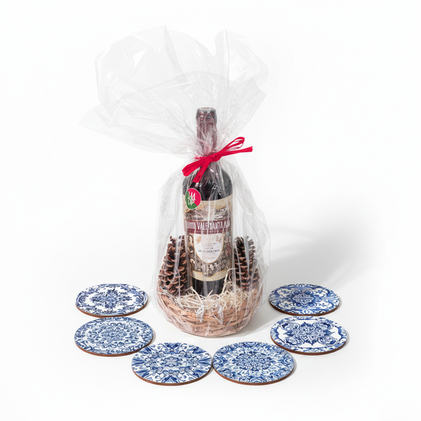Offrez un concentré d’élégance portugaise avec ce panier cadeau raffiné, mêlant grand vin du Douro et artisanat inspiré des azulejos traditionnels. Un cadeau idéal pour les amateurs de vin, de culture portugaise et de belles tables.
