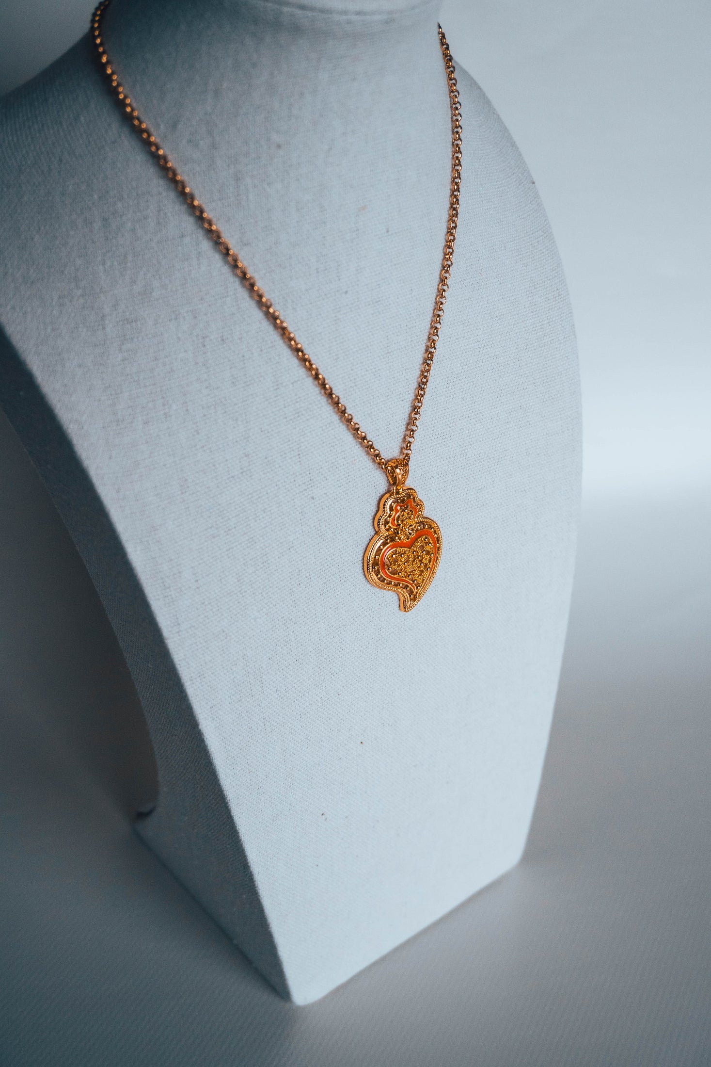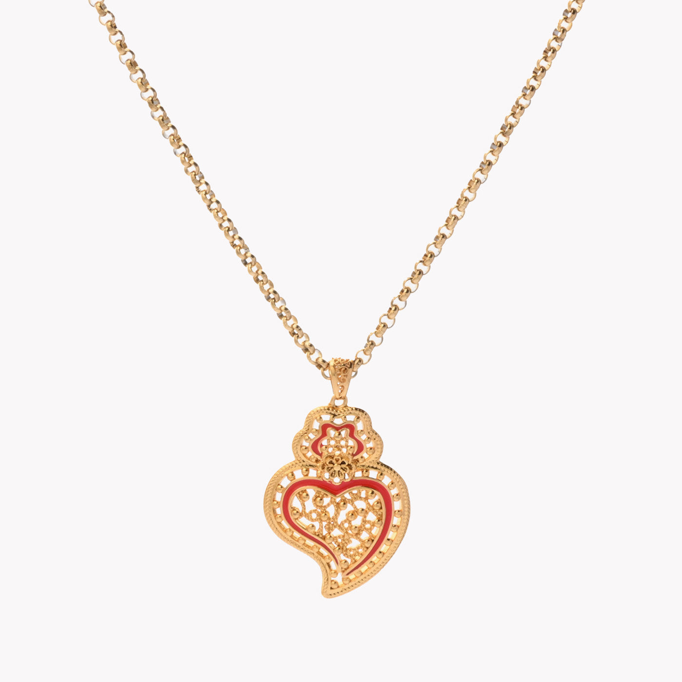 Laissez-vous charmer par le collier Encanto Azul ou Encanto Vermelho, une pièce qui unit tradition et modernité avec élégance. Son pendentif Coração de Viana, finement travaillé en filigrane, se décline en bleu profond ou rouge éclatant, symbolisant la lumière et la passion du Portugal.