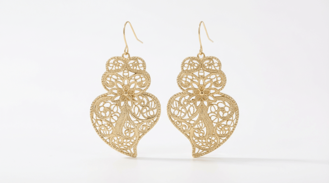Boucles d’Oreilles Coração de Viana Filigrane dorées
