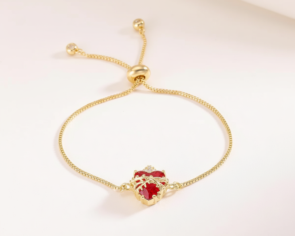 Ce bracelet Sacré-Cœur signé Luzia unit foi et élégance dans une création intemporelle. Son pendentif en forme de cœur orné d’une couronne d’épines et d’une croix sertie d’une pierre brillante symbolise la passion du Christ, la protection et l’amour éternel.