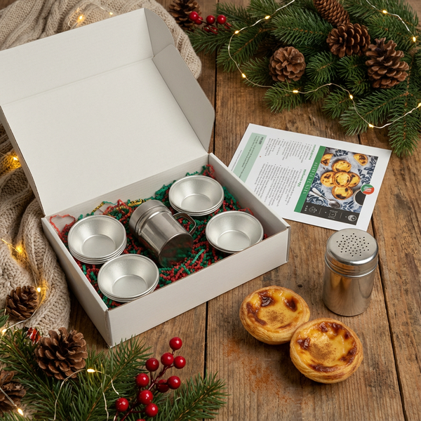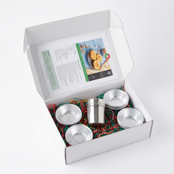 Pensé pour les amoureux de la cuisine portugaise, ce kit vous permet de préparer des pastéis de nata maison sans matériel supplémentaire. Les moules en aluminium offrent la texture traditionnelle : extérieur croustillant, intérieur crémeux.
