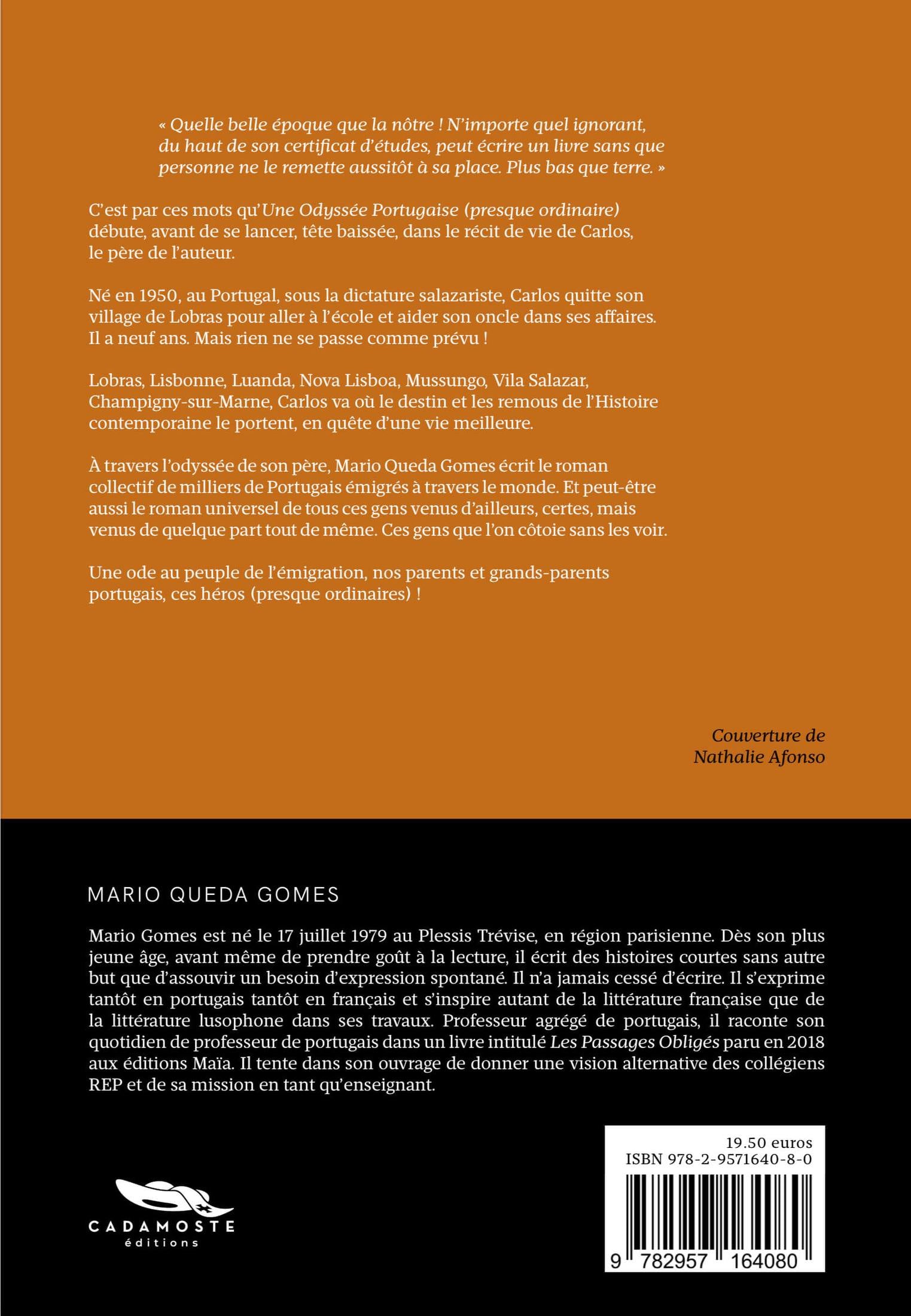 À travers l’odyssée de son père, Mario Queda Gomes écrit le roman collectif de milliers de Portugais émigrés à travers le monde. Et peut-être aussi le roman universel de tous ces gens venus d’ailleurs, certes, mais venus de quelque part tout de même. Ces gens que l’on côtoie sans les voir. Une ode au peuple de l’émigration, nos parents et grands-parents portugais, ces héros (presque ordinaires) !Ce récit écrit à la première personne du singulier, au caractère fort et au rythme soutenu, passant du rire aux larmes et des larmes au rire, retrace ainsi la jeunesse de ce héros (presque ordinaire) né sous la dictature de Salazar, arrivé en France en 1975 sous Valéry Giscard d’Estaing. À la fois narrateur et personnage central, Carlos prête ainsi sa voix tragicomique à cet autre, l’étranger, cet être humain qui nous ressemble tant et qui n’aspire qu’à une chose: accéder à une vie meilleure.