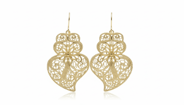 Les boucles d’oreilles Coração de Viana Filigrane incarnent l’essence même de l’héritage portugais.