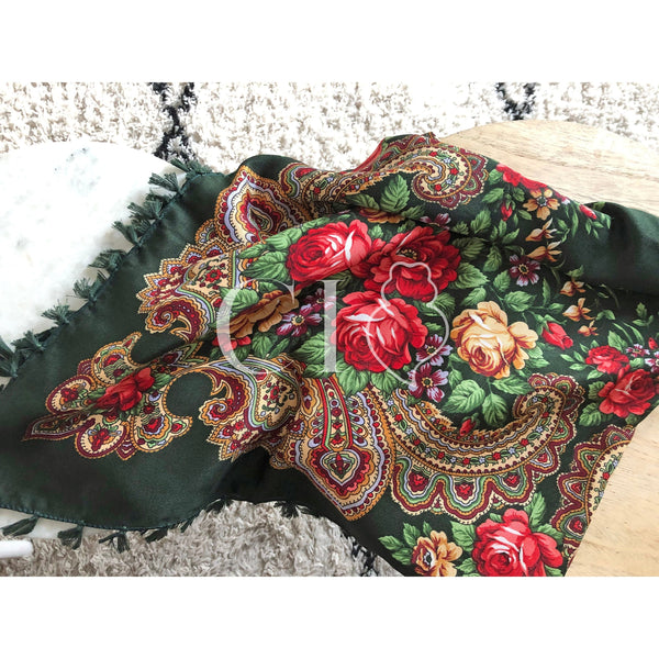 - Dimensões: O cachecol mede aproximadamente 90 cm de comprimento e 90 cm de largura, o que o torna um tamanho versátil que pode ser usado de diferentes maneiras, como no pescoço, no cabelo ou amarrado na bolsa.