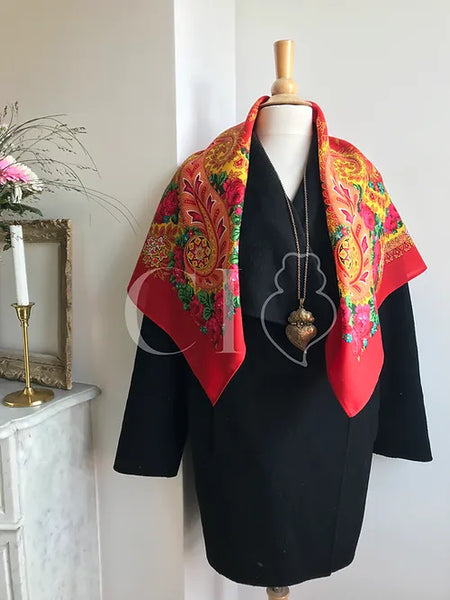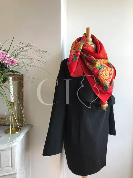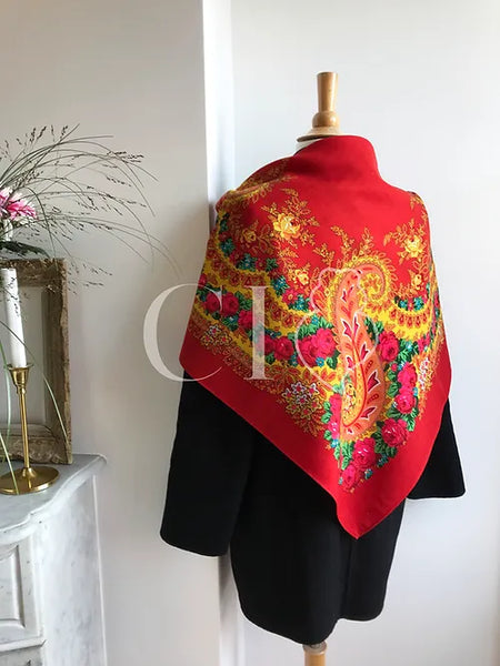 Ao usar o lenço vermelho Tsvety III, você veste a elegância de Portugal. Deixe que este lindo acessório de moda adicione um toque de cor e estilo ao seu guarda-roupa.