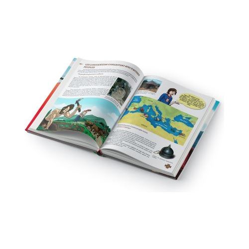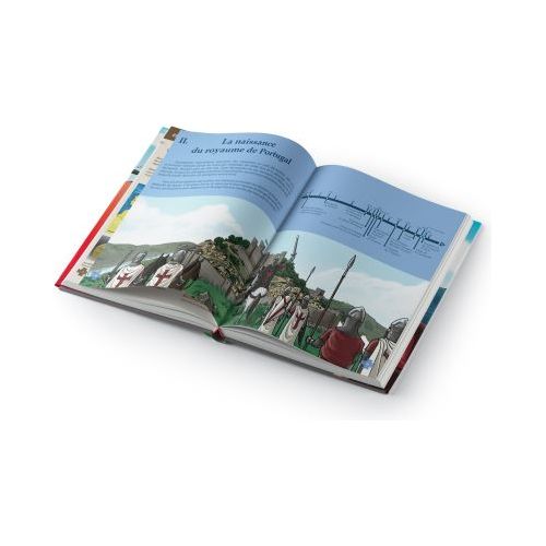 Um livro narrado e ilustrado de 124 páginas para crianças e adolescentes que reconta a fascinante história de Portugal em francês! Este livro detalha todos os grandes acontecimentos que marcaram o país: a sua criação graças a D. Afonso Henriques, as suas grandes descobertas pelo mundo, os conflitos com Espanha, o grande terramoto, as invasões francesas e a passagem à ditadura de Salazar. As crianças são então imersas no ambiente do Portugal do século XX que levou à partida de milhões de portugueses para países de todo o mundo. Dois pequenos personagens acompanham as crianças nesta viagem pela história, Ruben e Matilde. Estes dois adolescentes têm pais portugueses: o Ruben vive no Luxemburgo e a Matilde nasceu em França mas são primos! Ambos se orgulham de serem portugueses e confidenciam os seus sentimentos sobre os grandes momentos de glória e desgraça da nação. O jovem desenhista, João Serrano, acompanha estas histórias com um traço de lápis "muito nerd" e torna a viagem pela história fascinante: o meu desenho preferido é o do assassinato do rei, mas a representação das lutas de Viriato contra os romanos não deixa crianças indiferentes. Mapas, frisos cronológicos mas também fotos de monumentos ou pinturas permitem aos jovens aprofundar o assunto se assim o desejarem. Uma excelente ferramenta ou presente para partilhar em família os grandes momentos da história de Portugal.