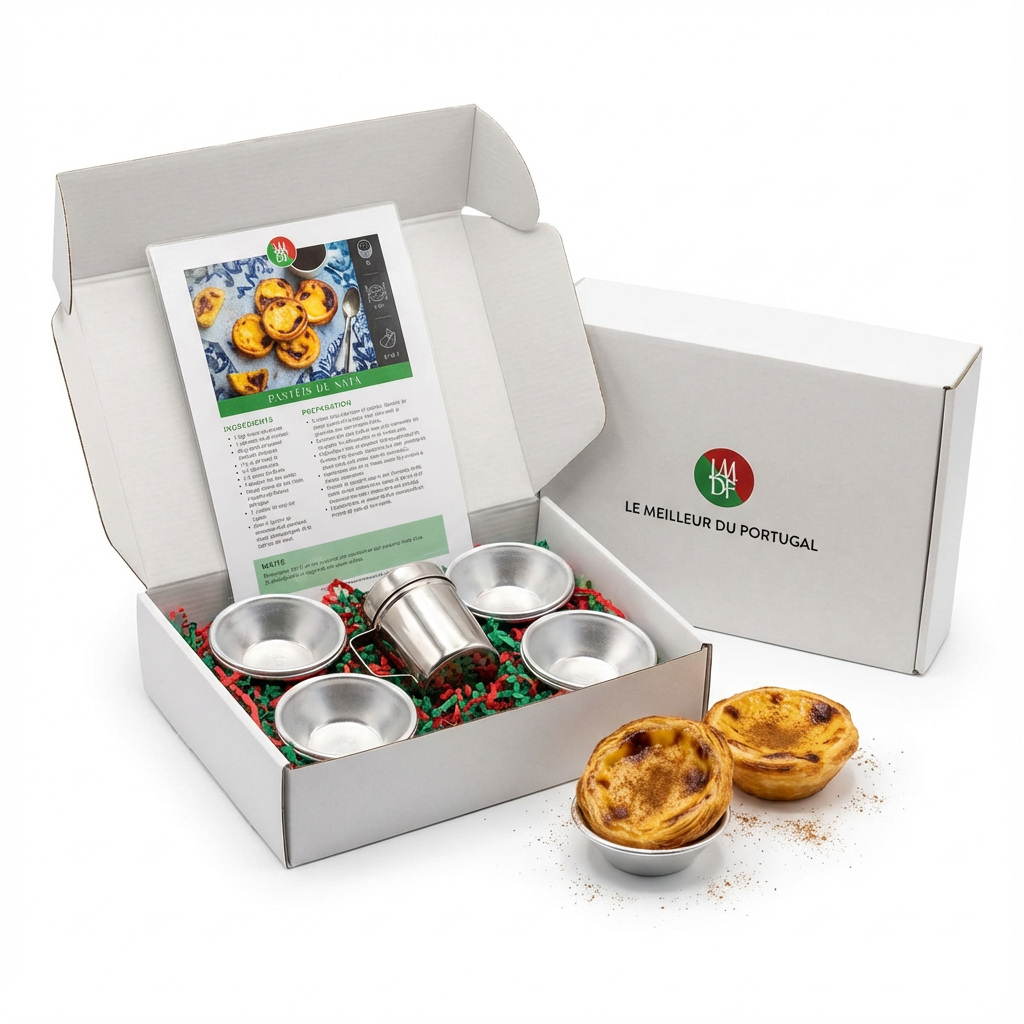 Pensé pour les amoureux de la cuisine portugaise, ce kit vous permet de préparer des pastéis de nata maison sans matériel supplémentaire. Les moules en aluminium offrent la texture traditionnelle : extérieur croustillant, intérieur crémeux.