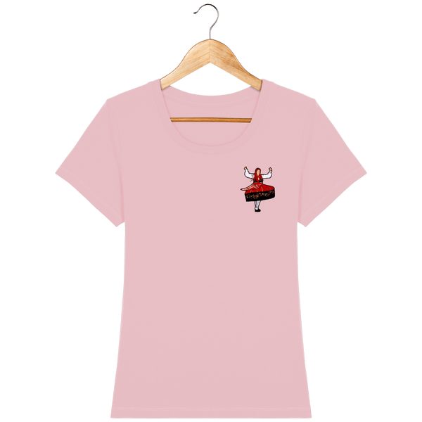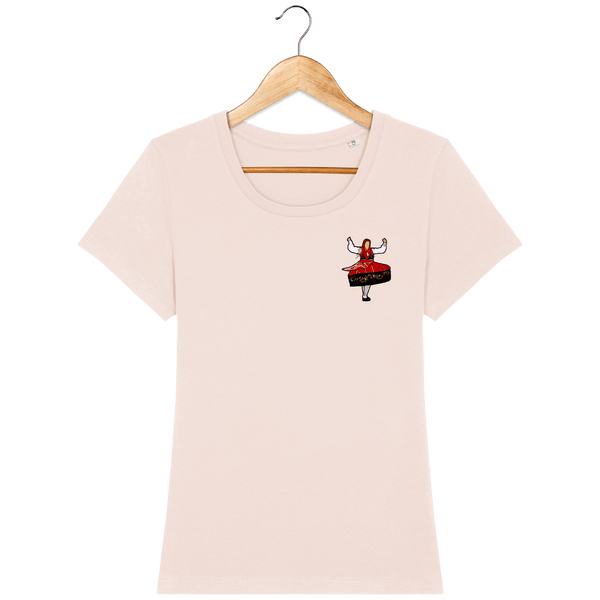 A camiseta é confeccionada em algodão orgânico macio e confortável. Possui mangas embutidas e gola canelada 1x1, com fita interna de limpeza do mesmo material. Os acabamentos incluem pesponto duplo estreito na parte inferior das mangas e corpo. Esta camiseta feminina é feita de jersey simples 100% algodão orgânico penteado torcido. Disponível nos tamanhos XS a XXL, tem um corte justo e pesa 155 G/M² para um conforto ideal.
