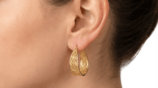 Les boucles d’oreilles Arrecadas sont l’un des symboles les plus reconnaissables de la joaillerie traditionnelle portugaise.