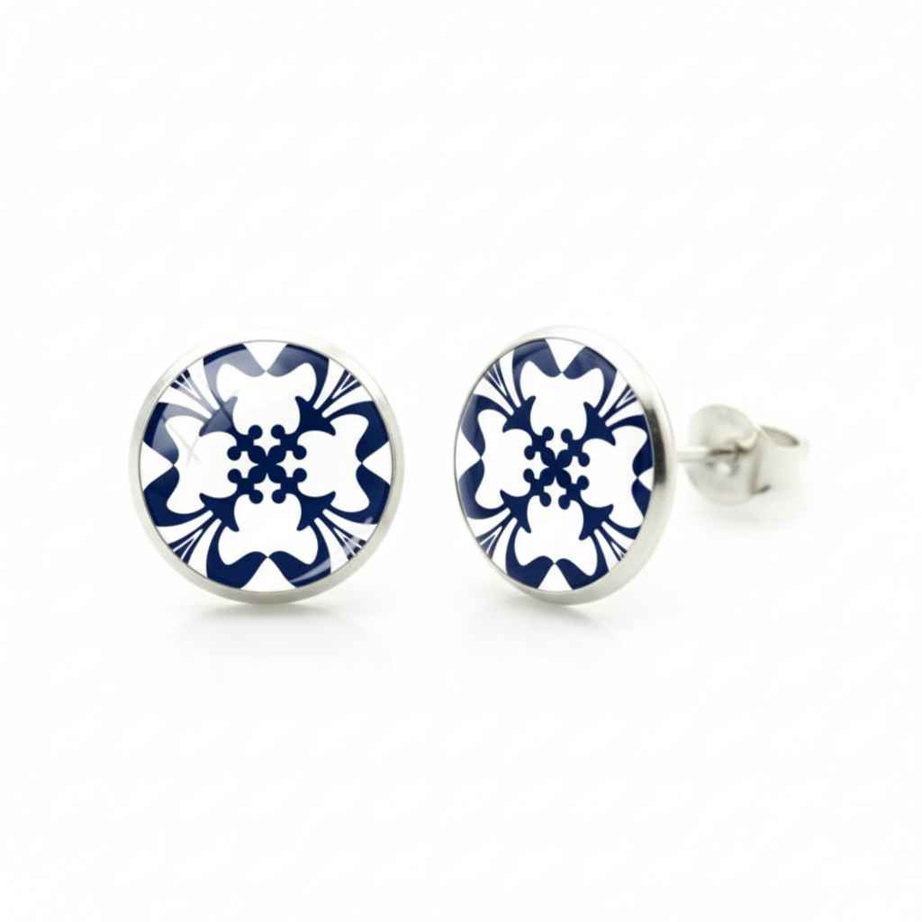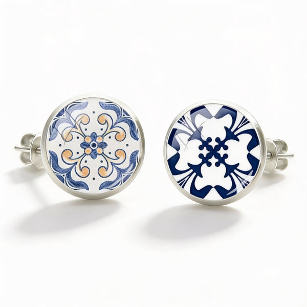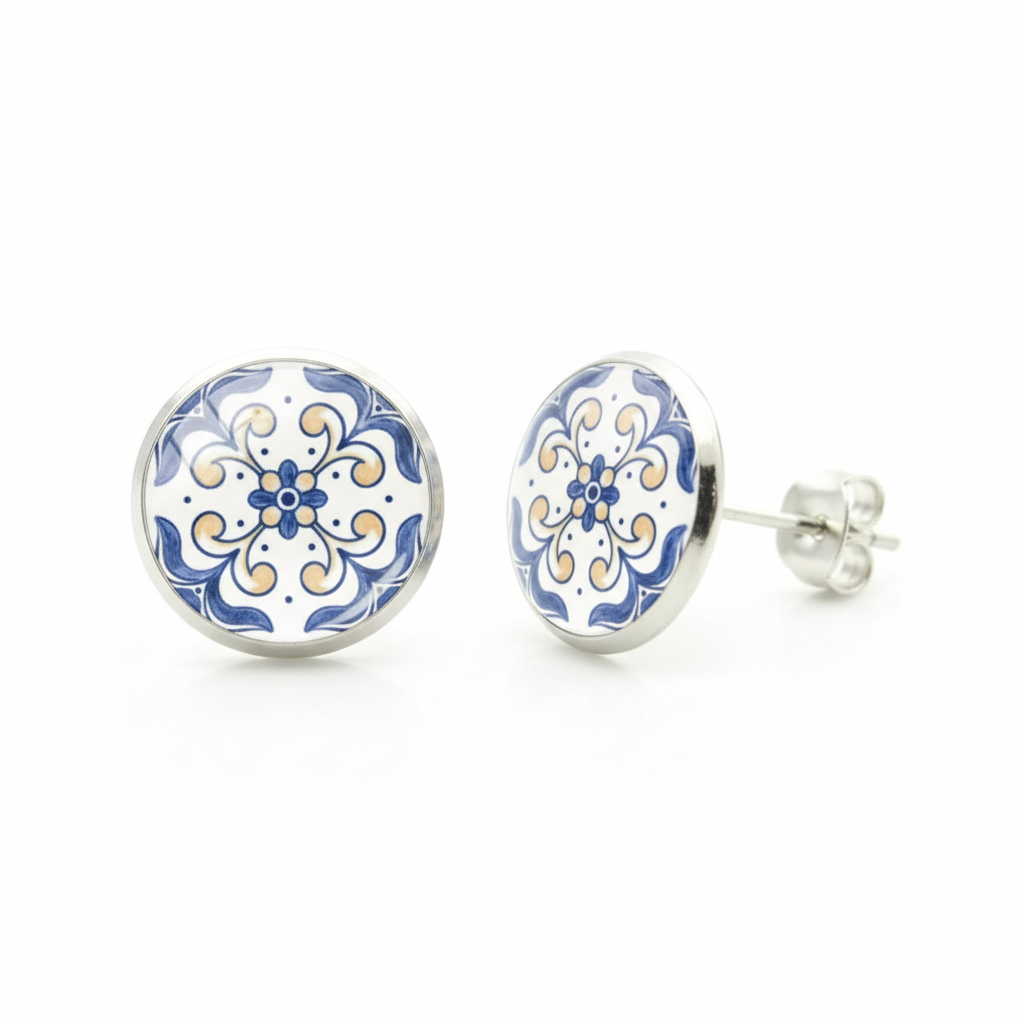 Mergulhe no coração da tradição portuguesa com os brincos "Azulejos" da Luzia . Inspirados nos famosos azulejos de barro que adornam os monumentos de Portugal, eles capturam a delicadeza e a elegância desta arte atemporal.
